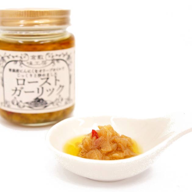 青森特産にんにくをオリーブオイルで焦がさないように丁寧に炒めて香りと旨味を最大限に引き出しました。