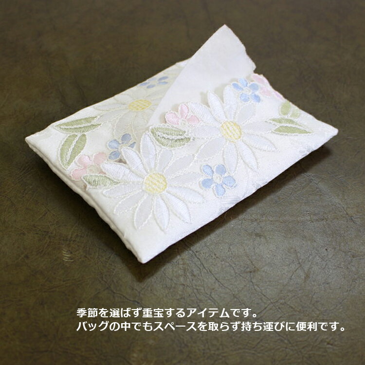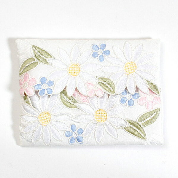 ミニティッシュケース 約12x9cm 【ゆうパケット選択可】 フラワー刺繍&カットワーク 素朴でクラシカルな印象の花柄コード刺繍