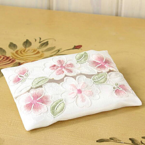 ミニティッシュケース 約12×9cm 可愛い 花柄刺繍 春 さくら コード刺繍 女子力 必需品 お出かけ 明るい 【ゆうパケット選択可】