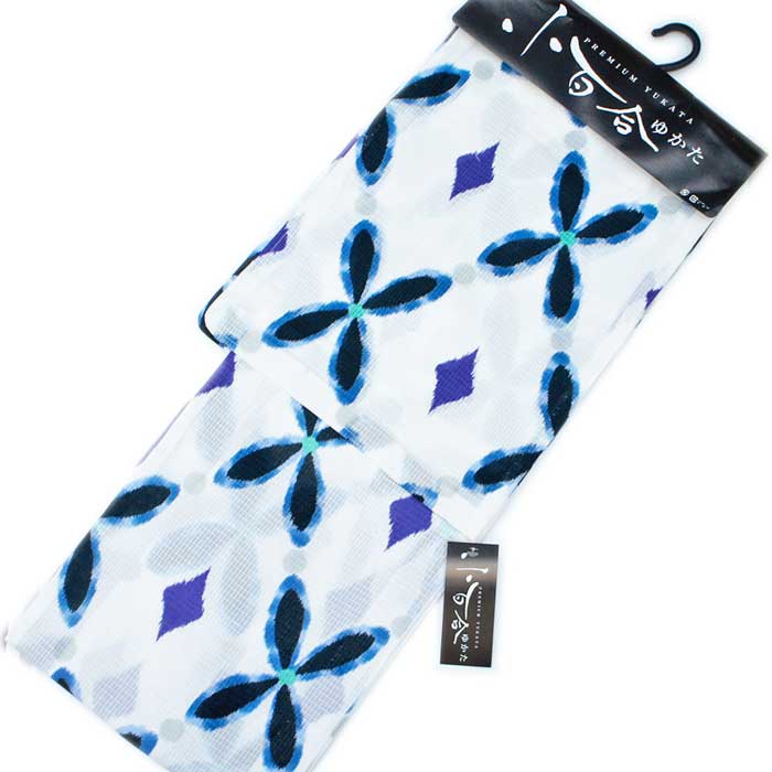 浴衣 レディース 単品 「白地 花に芝」 フリーサイズ レトロ モダン 大人柄 女性浴衣単品 女浴衣 ゆかた yukata 【メール便不可】