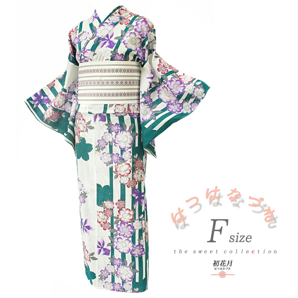 浴衣 レトロ フリーサイズ 単品 白地 白 オフホワイト 緑 花 桜 金魚 縞 綿100% ストライプ さくら サクラ シンプル オシャレ 可愛い 大人 大人可愛い エレガント おまかせ 夏祭り 花火大会 Mサイズ Lサイズ No.11-0136t